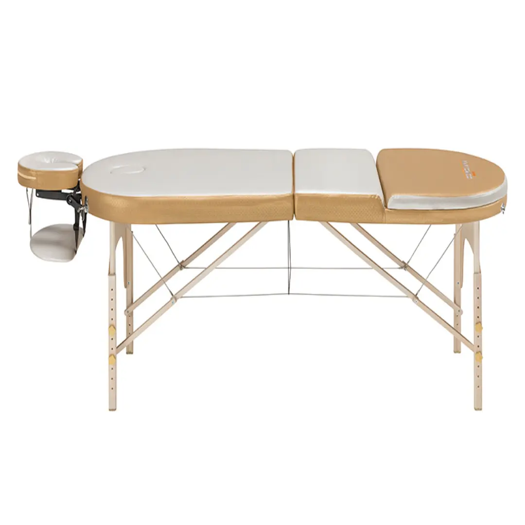 Деревянный каркас способен выдерживать динамическую нагрузку в 370 килограмм. Конструкция, состоящая из 3-х секций с возможностью регулировки наклона края каждой секции, позволяет создать максимально удобные условия, как для посетителя массажного кабинета, так и для специалиста, который оказывает услуги массажа. Еще массажный стол Anatomico Milano оснащен люверсом для лица, что создает дополнительный комфорт для клиента.